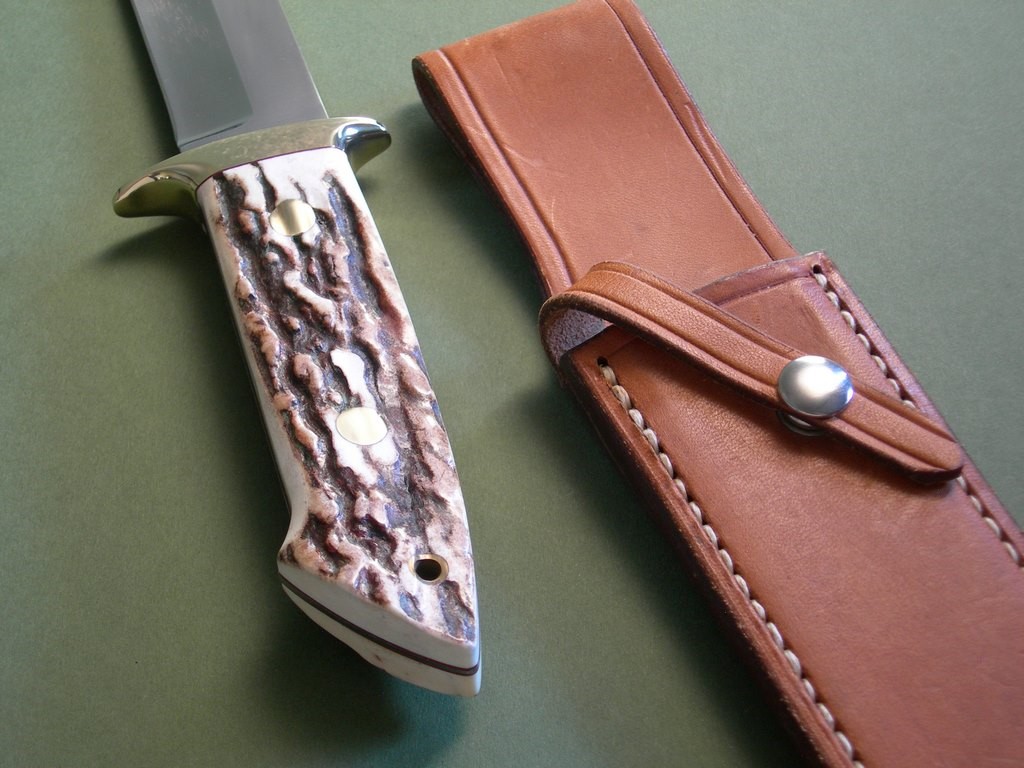 9 photos for review – I'll pack / ship the knife in the new brown canvas carry case shown. This knife was part of the late Tom Clinton's collection, it will be near impossible to find a nicer stag handled example of this model in better condition. Truly a rarity, a perfect knife to tuck away for collection / investment purposes. Thanks and good luck.
