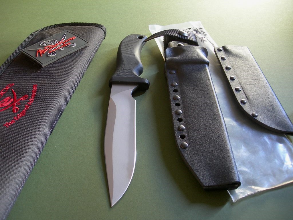 Summary: this is a Mad Dog Voodoo Hound with VVTL finish, SmJMD logo and black handle. Mad Dog's double edged fighting knives are the cats meow, if you're looking for something that'll slice coming and going then this is the knife for you. (just try not to cut yourself, ok?)