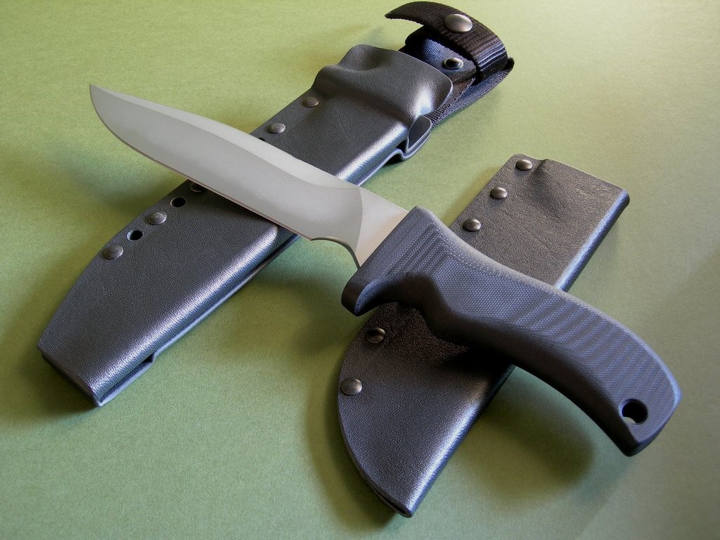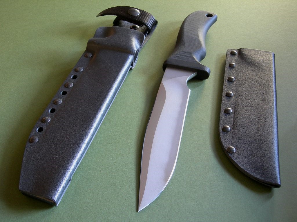 The knife comes with two MD-issue kydex sheaths: one right-side carry black ATAK, and one thin / conceal carry slip sheath. Brand new / mint condition.