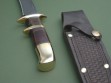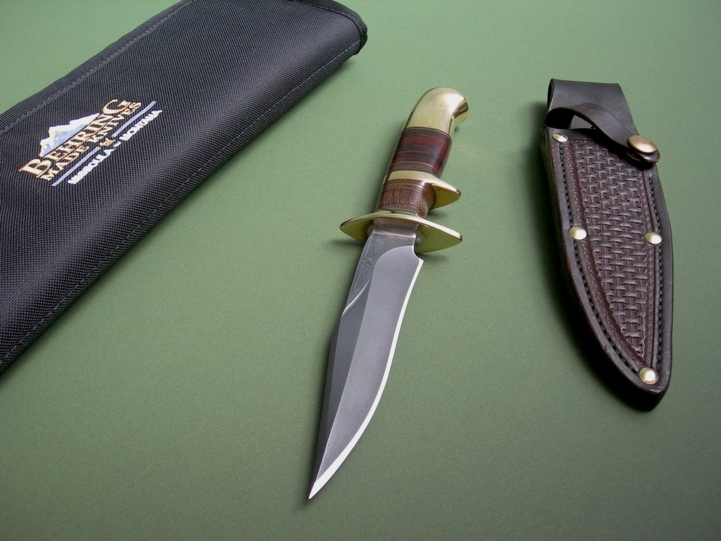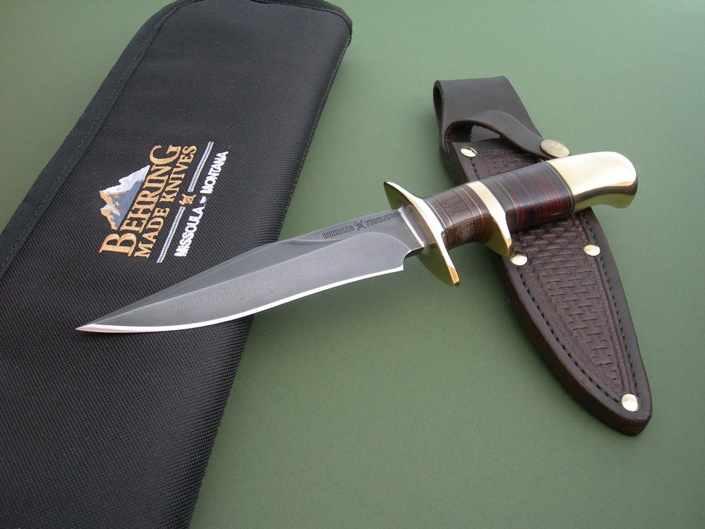 6 photos for review – as shown, a black Behring Made Knives carry case is included. This knife feels super nice in hand, a bit of heft to it with all the brass hardware. The moment I saw it I wanted to keep it for myself but if I adhere to that policy (keeping what I like) I’ll end up broke and living under a bridge. Anyway... this is a kick ass knife, do your collection a favor and snap it up. Thanks and good luck.