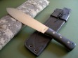 This awesome rare bolo is light in hand as it's made from 5/32" stock, very functional even though it's a hair over 15-3/4" overall length. It's really beautiful with the wet sanded blade and black micarta scales, serial #1 on the back with Dave’s “BECK” stamp on the front. Tapering tang with 2 piece Loveless pins and lined lanyard hole. Condition: unused with original edge, mint condition.