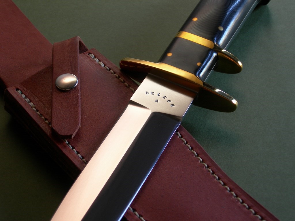 6 photos for review – as shown, a new black canvas carry case is included. This is a very popular DeLeon model – these long-bladed subhilt A1's are really sweet. Priced to sell and a great knife for collection / investment purposes -- thanks and good luck.