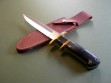 The sheath is original to the knife and has never been on a belt. Knife / sheath fit is perfect, the sheath is in excellent+++ or better condition with nothing more than a few light handling marks and a light line at the throat from past knife storage.