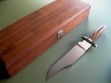 The knife features a 8-7/8" satin finish blade and is 14-1/8" overall length. Made from 1/4" blade stock with false (unsharpened) upper clip, stainless fittings and a beautiful custom wood handle. Blade markings and etching as shown in the photos, I've no idea if any other "DALLAS" Bowie knives were made.