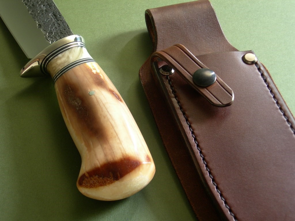 The knife was custom fitted to a super nice riveted leather sheath made by Amy over at Warlander Leather. Quality and look / design both exceptional, the sheath is in near mint condition with one small scuff on the back.