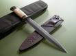 This FS dagger has been custom fitted to a gorgeous leather sheath made by Warlander Leather. Tooling on the front with matching color snap and stitching, the sheath is also in mint condition.